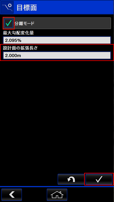 3.分離モードに✅を入れて、最大勾配変化量・設計面の拡張長さを任意で設定